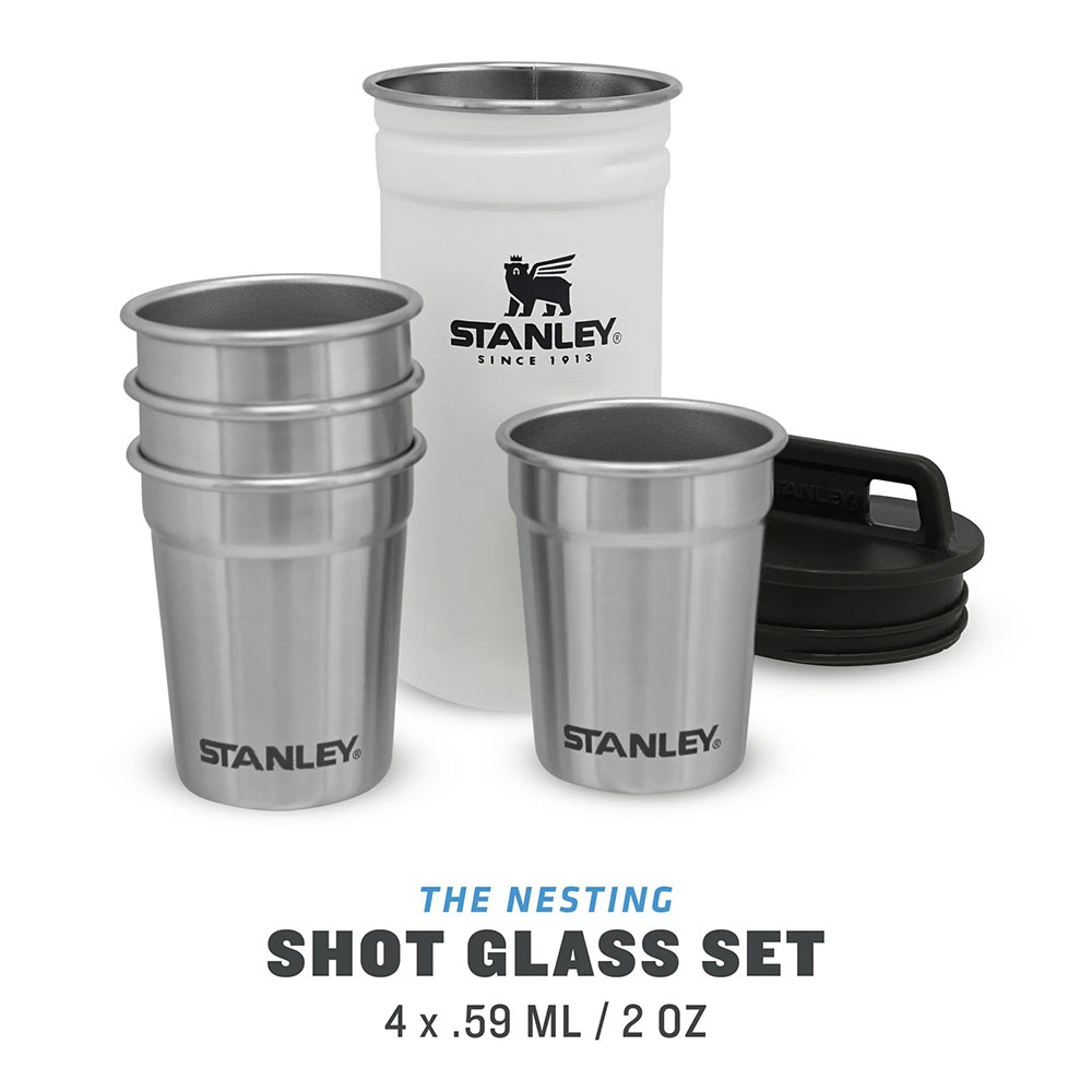 با این مجموعه، شما چهار لیوان شات با ظرفیت 2 اونس (حدود 59 میلیلیتر) و یک جعبه حمل استیلی دریافت میکنید.