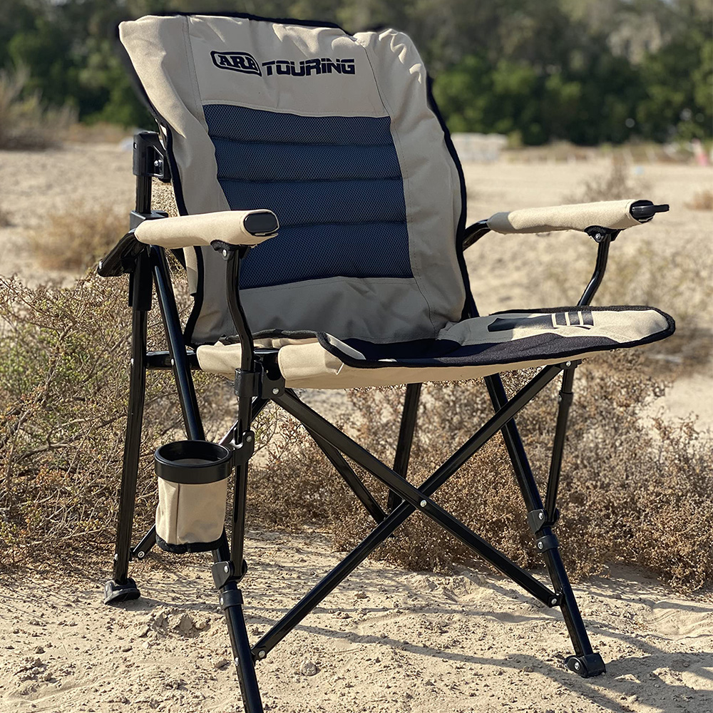 آخرین مدل صندلیهای کمپینگ ARB به نام LAYBACK در بازار عرضه شدهاند. این صندلیها ترکیبی از مزایای مختلف موجود در بازار را در خود جای دادهاند. صندلی LAYBACK با دستههای لولهای و روکش دار، دوام بالایی را در مقایسه با مدلهای دیگر صندلیهای ARB ارائه میدهد. پشتی آن دارای منافذ تنفسی و طراحی ارگونومیک است و با وجود بالشتک در بخش پشتی، راحتی و پشتیبانی طبی را فراهم میکند. پشتی قابل حرکت این صندلی میتواند برای نشستن و استراحت در حالتهای مختلف تنظیم شود. در کنار صندلی، جای لیوان یا بطری از جنس پارچه وجود دارد و در سمت دیگر، یک دسته با نگه دارنده برای لیوانهای جامی شکل و با پایه نازک قرار گرفته است.