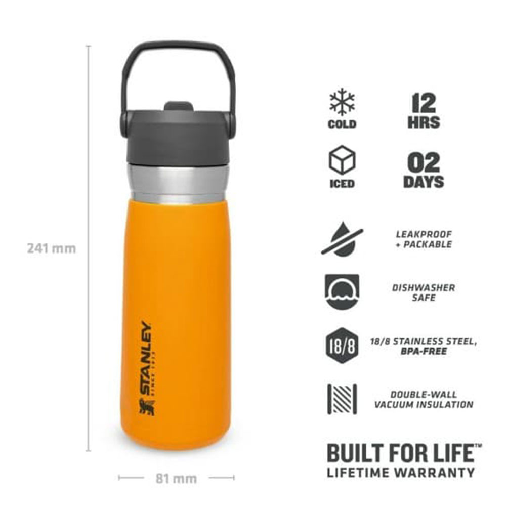 قمقمه آب استنلی مدل Go Flip Straw Water Bottle با ظاهری جذاب، به شما این امکان را میدهد که در طول فعالیتهایی مانند کوهنوردی، پیادهروی، کمپینگ، ورزش و سفرهای آفرودی، از نوشیدنیهای خنک لذت ببرید. با ظرفیت 650 میلیلیتر، این قمقمه از جنس فولاد مقاوم 18.8 ساخته شده و در ساختار آن از مواد مضر BPA استفاده نشده است. به همین دلیل، هنگامی که مایعات داخل قمقمه ریخته میشود، طعم نوشیدنی حفظ میشود و همچنین از زنگزدن و آسیبدیدن قمقمه در شرایط آبوهوایی مختلف جلوگیری میشود.