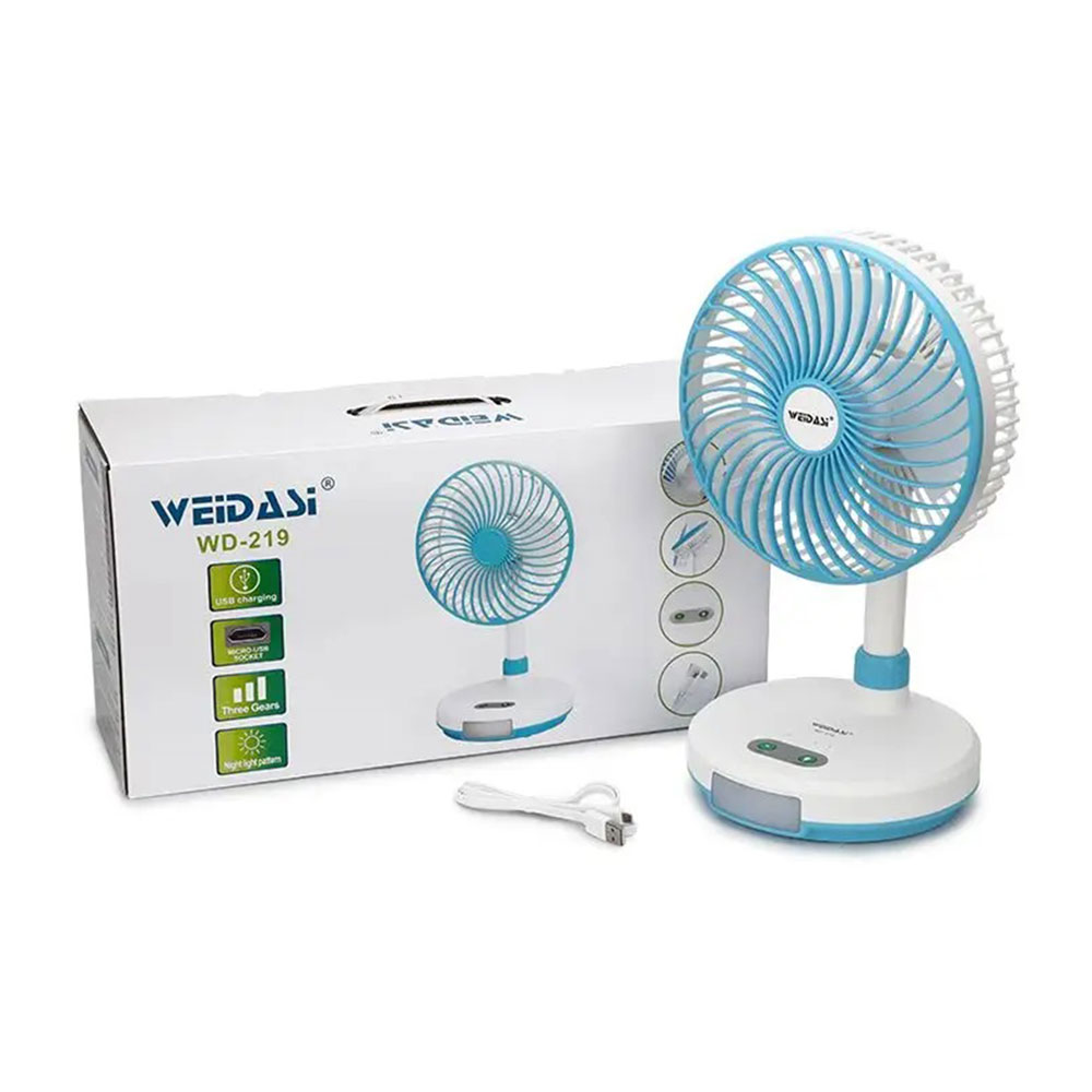 این دستگاه دارای سه حالت قدرت پرتاب باد با مقادیر زیاد، متوسط و کم است. همچنین، قادر است تا به مدت ۸ ساعت شارژ خود را حفظ کند؛ از دو باطری شارژی با ظرفیت ۱۲۰۰ میلی‌آمپر استفاده می‌کند. همچنین دارای یک خروجی شارژر است که امکان شارژ گوشی‌های همراه و سایر دستگاه‌ها را فراهم می‌کند. با چراغ خوابی به توان ۷ وات نیز مجهز شده است و دارای دسته‌ی جابجایی و بدنه‌ای بسیار مقاوم است. علاوه بر این، می‌توان آن را هنگام شارژ نیز استفاده کرد. در ضمن، امکان تنظیم جهت پرتاب باد نیز وجود دارد.