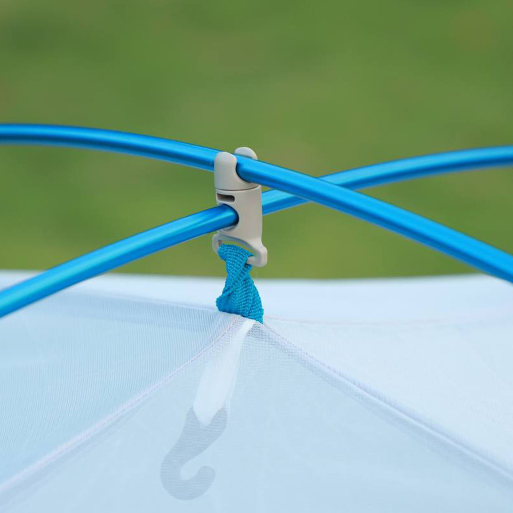 اقلام همراه 8 میخ آلومینیومی - بدنه اصلی چادر و پوش دوم - تیرک‌های آلومینیومی - طناب اتصال - طناب حمایت