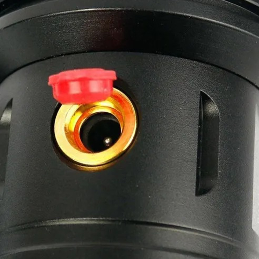 این چراغ قوه به یک هلدر باتری مجهز شده است که میتواند 4 عدد باتری قابل شارژ 2400 میلیآمپرساعت را دریافت کند که ظرفیتی 9600 میلیآمپرساعت دارد که بسیار قدرتمند است. همچنین یک شارژر سوزنی برای شارژ این محصول ارائه شده است تا بتوانید آن را هنگام دریافت استفاده کنید.