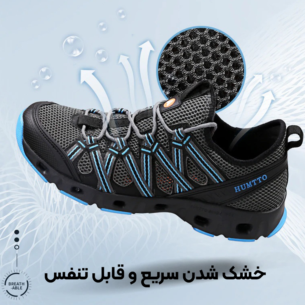آیا میخواهید کفشی راحت و بادوام با زیرهای کفشدوزک (لاتکس) داشته باشید که همچنین با مش (پارچهای هواپنهان) به خوبی تنفس میکند؟ اگر پاسخ شما بله است، کفش مردانه HUMTTO با ویژگی سریعخشک شدن برای شما مناسب است.